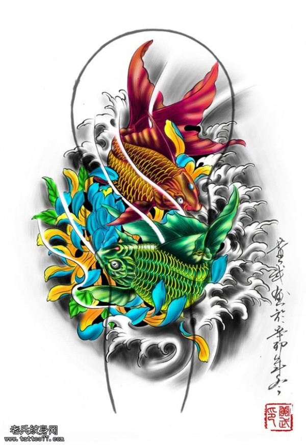 双鱼座纹身手稿_45张十二星座之双鱼手稿纹身图案