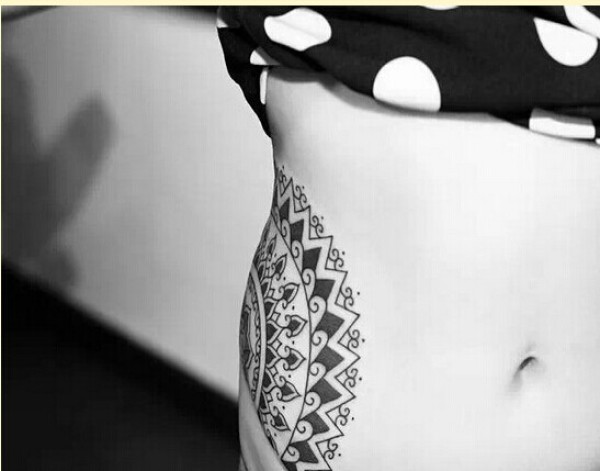 女性腰部莲花花纹刺青_腰部纹身图案大全_纹身图吧