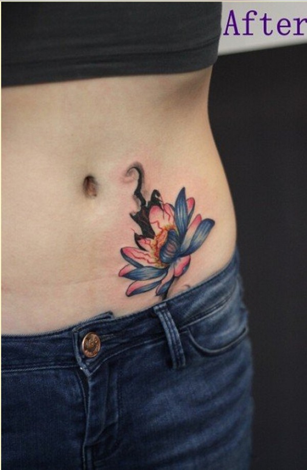 时尚女生腹部漂亮莲花纹身图案