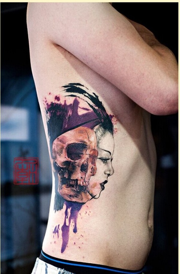 侧腰女骷髅刺青图案图片_骷髅纹身图案大全_纹身图吧