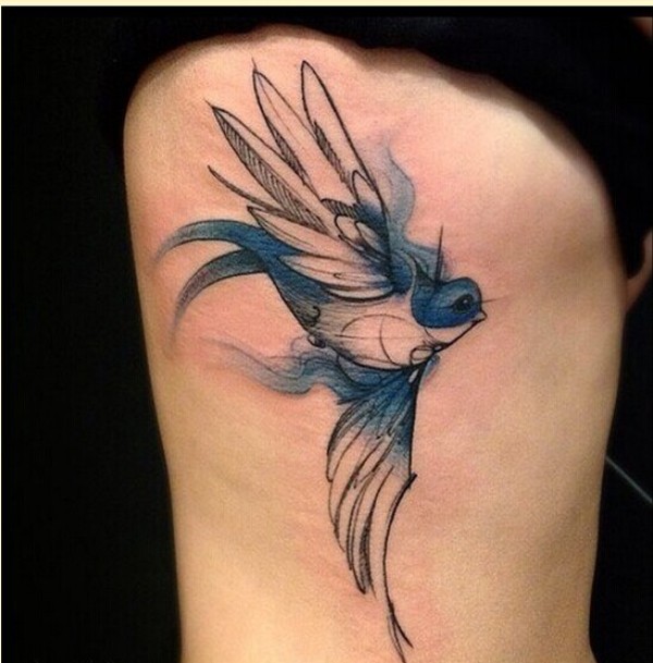 时尚侧腰漂亮蜂鸟纹身图案欣赏 图片