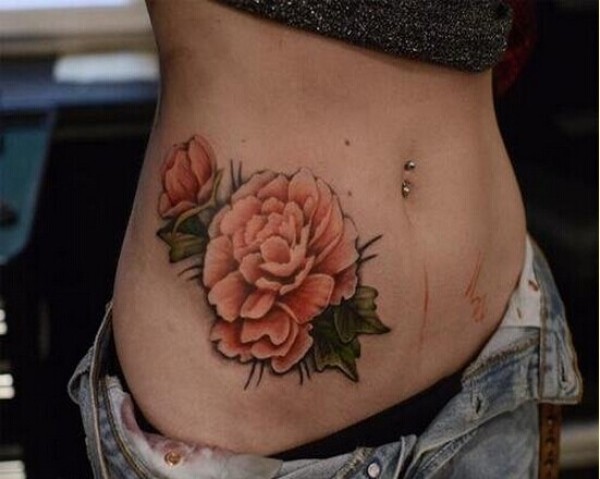 时尚女生腹部漂亮玫瑰花纹身图案欣赏图片