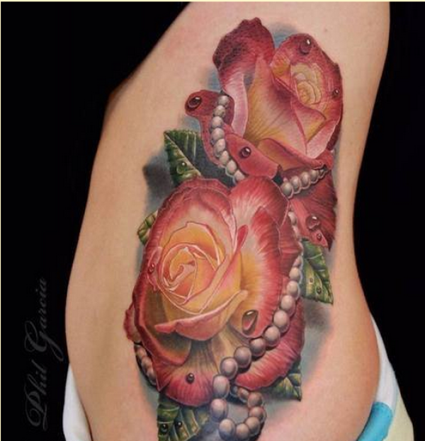 时尚侧腰漂亮彩色玫瑰花纹身图片图片