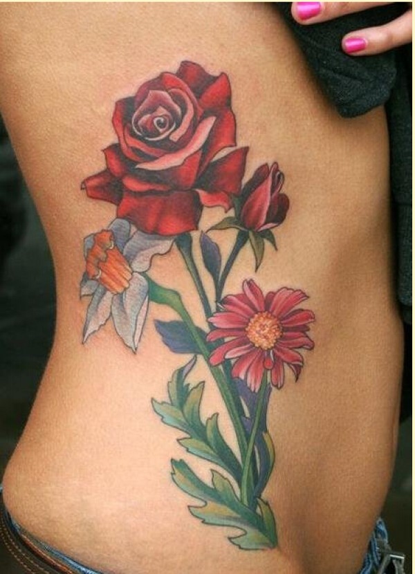 时尚女生侧腰好看的玫瑰纹身图片图片