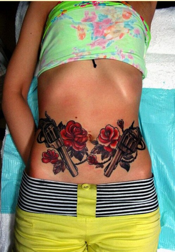 分享一款腰部时尚性感的蝶恋花纹身图案_腰部纹身图案大全_纹身图吧