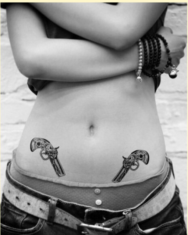分享一款腰部时尚性感的蝶恋花纹身图案_腰部纹身图案大全_纹身图吧