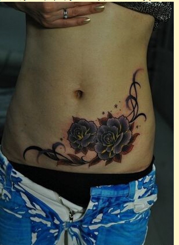 性感时尚美女腹部漂亮花卉藤蔓纹身图图片