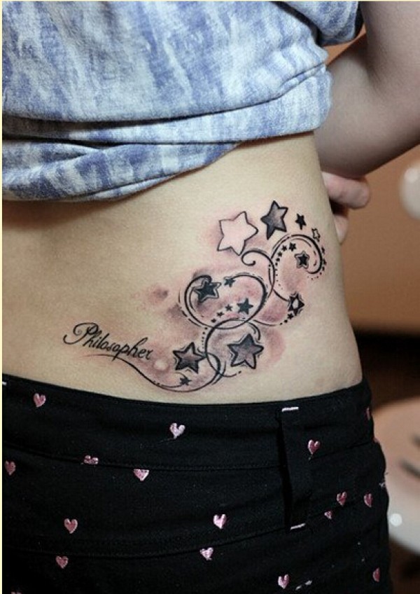 美女后腰时尚漂亮的图腾星星纹身图案