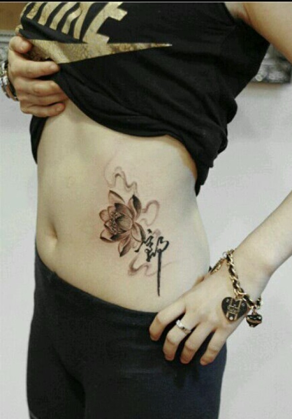 女性腰部莲花花纹刺青_腰部纹身图案大全_纹身图吧