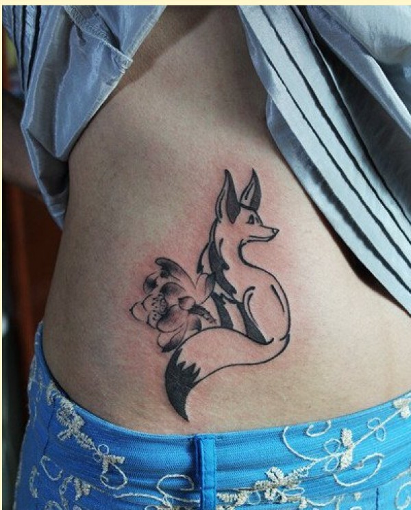 分享一款腰部时尚性感的蝶恋花纹身图案_腰部纹身图案大全_纹身图吧