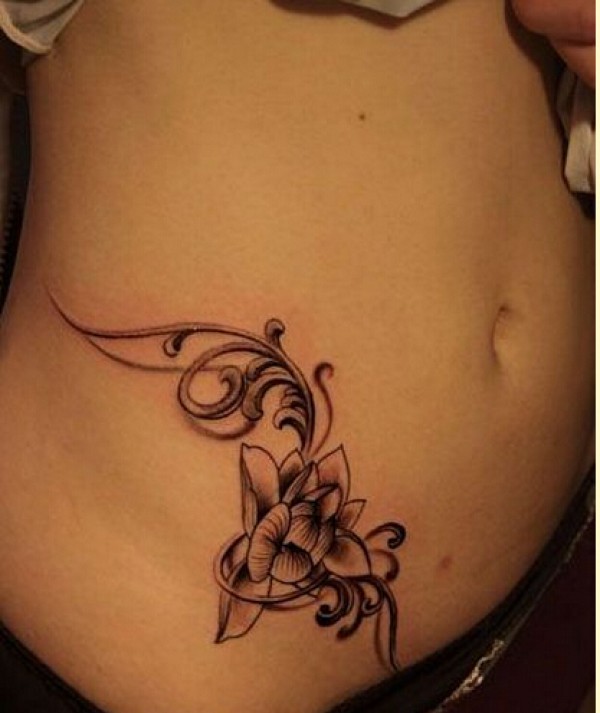 女性腰部莲花花纹刺青_腰部纹身图案大全_纹身图吧
