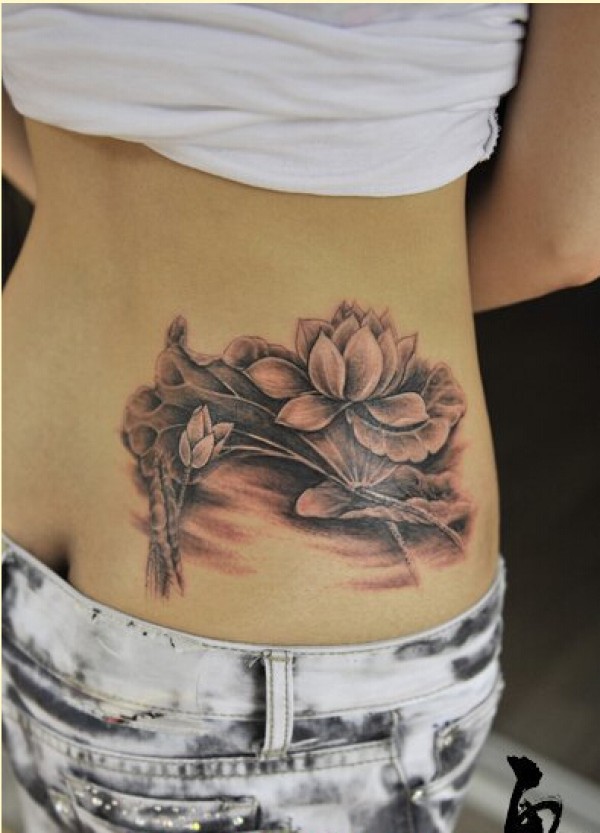 女性腰部莲花花纹刺青_腰部纹身图案大全_纹身图吧