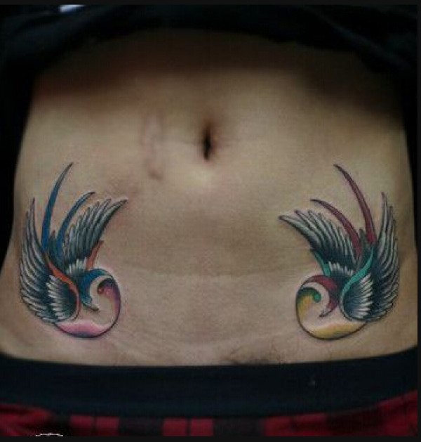 分享一款腰部时尚性感的蝶恋花纹身图案_腰部纹身图案大全_纹身图吧