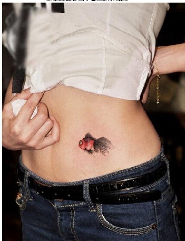 女生腹部漂亮好看的彩色小金鱼纹身图图片