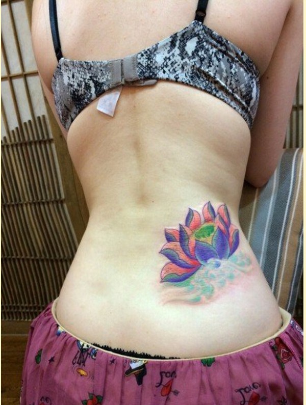 女性腰部莲花花纹刺青_腰部纹身图案大全_纹身图吧