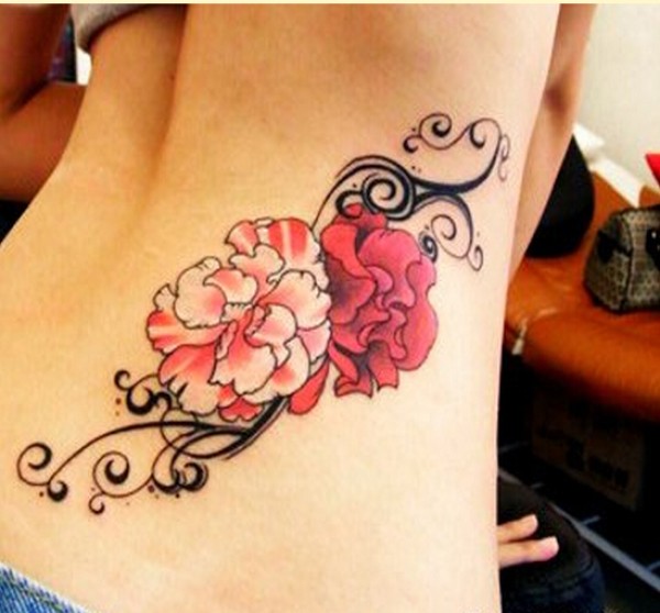 女性腰部莲花花纹刺青_腰部纹身图案大全_纹身图吧
