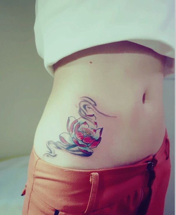 女性腰部莲花花纹刺青_腰部纹身图案大全_纹身图吧