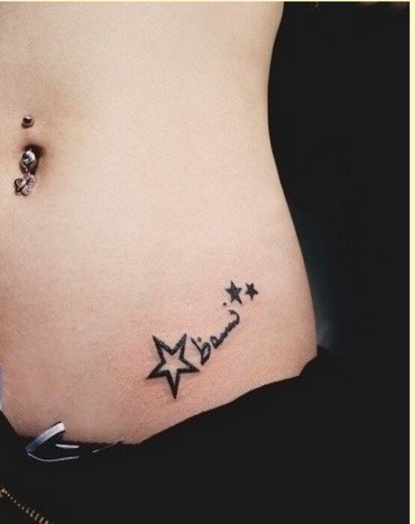 腹部漂亮好看的五角星英文字母纹身图图片