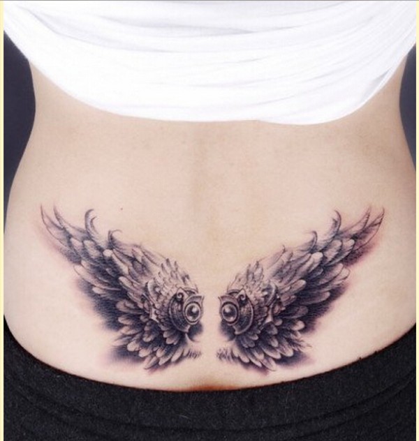 女生腰部漂亮好看的翅膀纹身图案