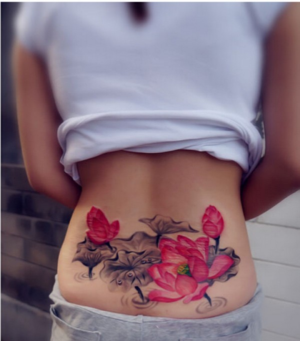 女性腰部莲花花纹刺青_腰部纹身图案大全_纹身图吧