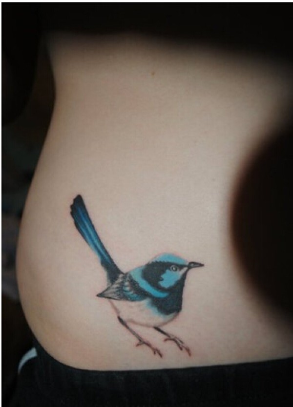 美女腰部时尚好看的彩色小鸟纹身