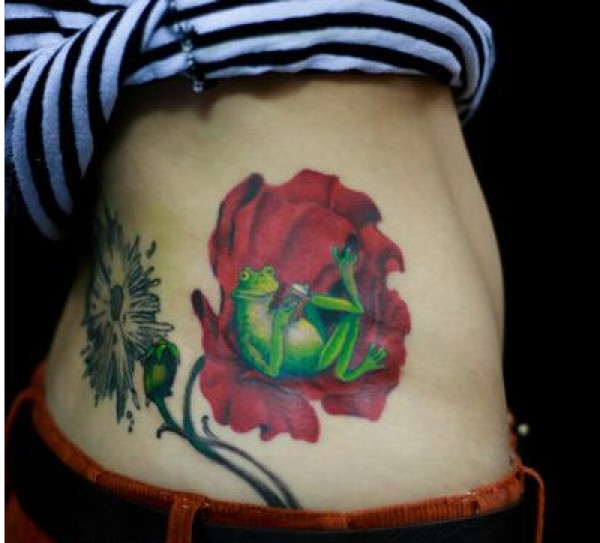 女性腰部莲花花纹刺青_腰部纹身图案大全_纹身图吧