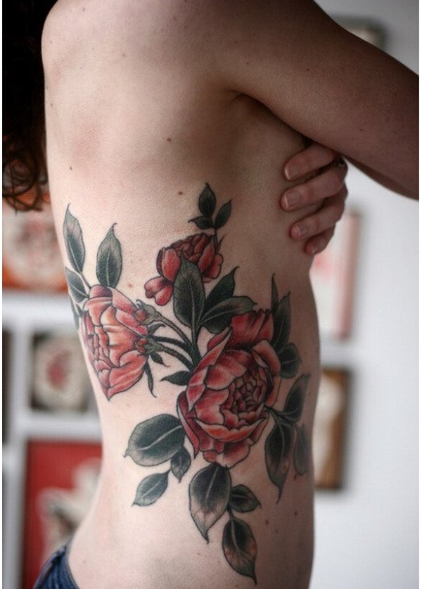 性感美女侧腰漂亮好看的玫瑰花纹身图图片