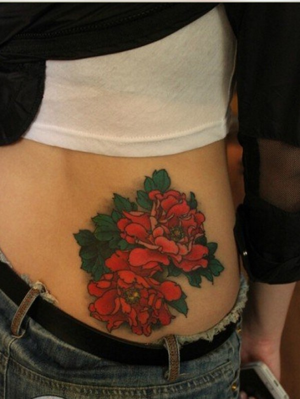 女性腰部莲花花纹刺青_腰部纹身图案大全_纹身图吧