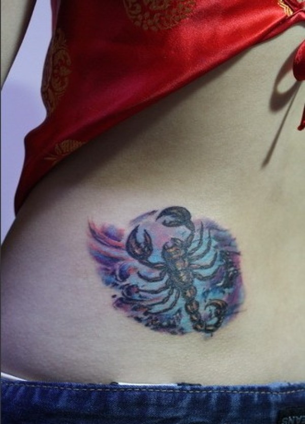 个性时尚女生小蛮腰剧毒蝎子纹身图片图片