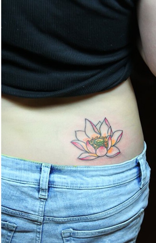 女性腰部莲花花纹刺青_腰部纹身图案大全_纹身图吧