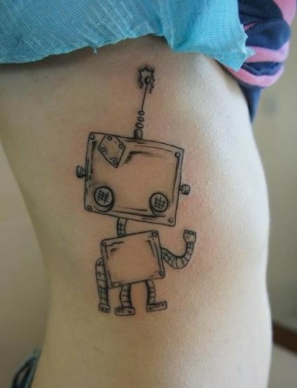 时尚女生腰部可爱好看的机器人纹身图图片