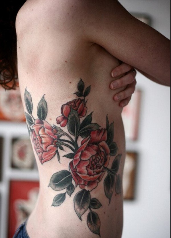 性感女生侧腰漂亮好看的玫瑰花纹身图图片