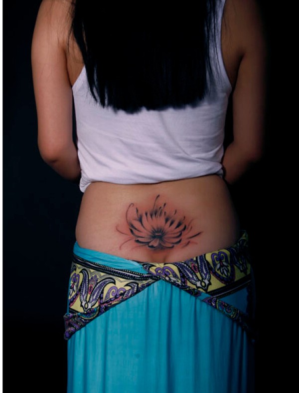 女性腰部莲花花纹刺青_腰部纹身图案大全_纹身图吧
