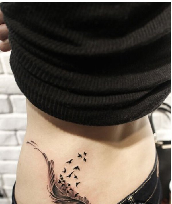 分享一款腰部时尚性感的蝶恋花纹身图案_腰部纹身图案大全_纹身图吧