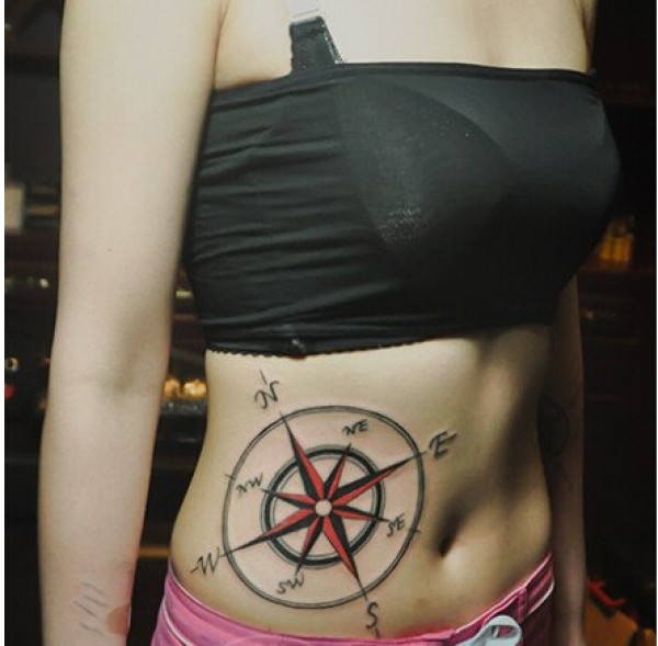 性感美女侧腰超大时尚指南针纹身图片图片