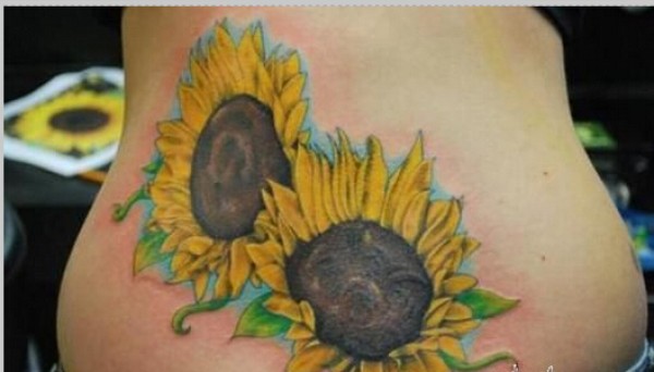 时尚腰部上两朵唯美好看的向日葵纹身图片