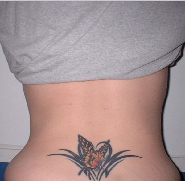 分享一款腰部时尚性感的蝶恋花纹身图案_腰部纹身图案大全_纹身图吧