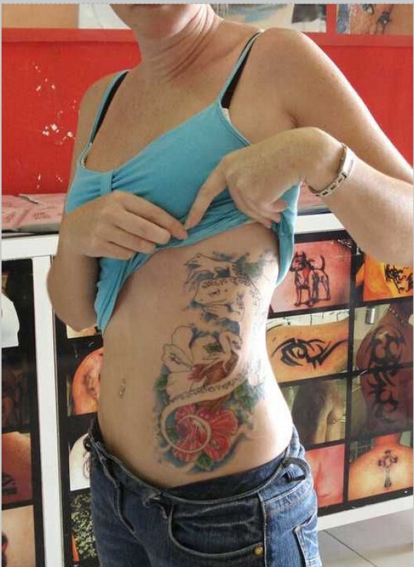 腰部创意鱼文身作品