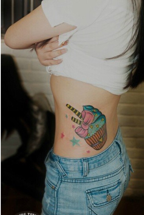 侧腰超级可爱好看的小清新冰激凌纹身图片
