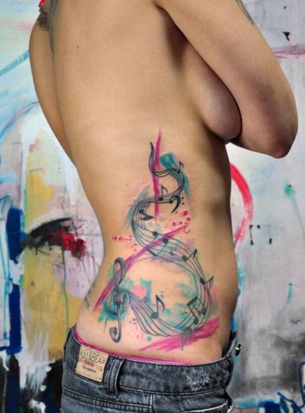 分享一款腰部时尚性感的蝶恋花纹身图案_腰部纹身图案大全_纹身图吧