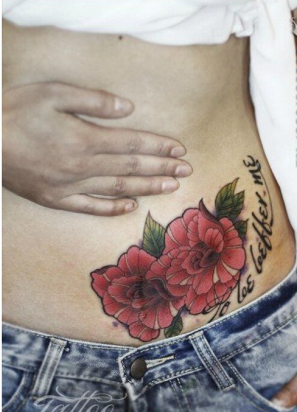 女生腹部漂亮好看的彩色玫瑰花纹身图图片