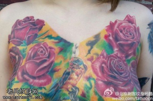 后肩唯美花藤英文图案图片_植物纹身图案大全_纹身图吧