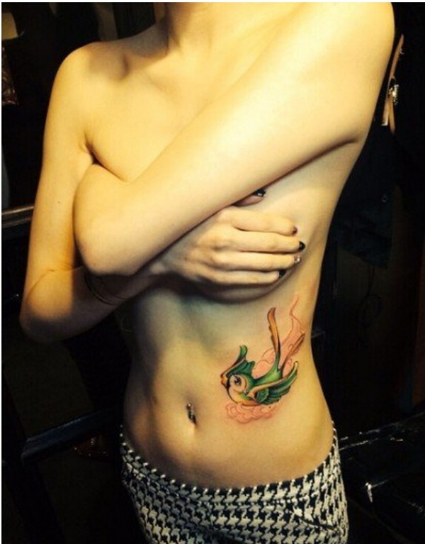 性感女生腹部唯美好看的彩色燕子纹身图片