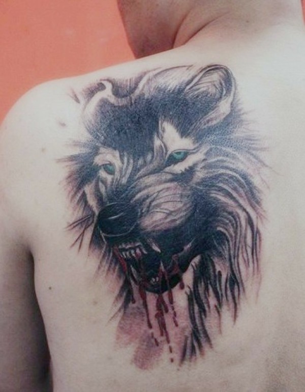 肩背霸气滴血狼头纹身图案