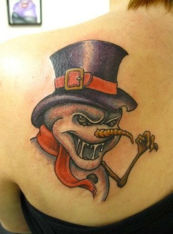 肩部创意个性邪雾雪人纹身图片