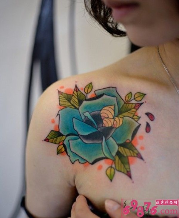 女生肩花纹身_15张女性双肩对称的肩花纹身图案作品图片