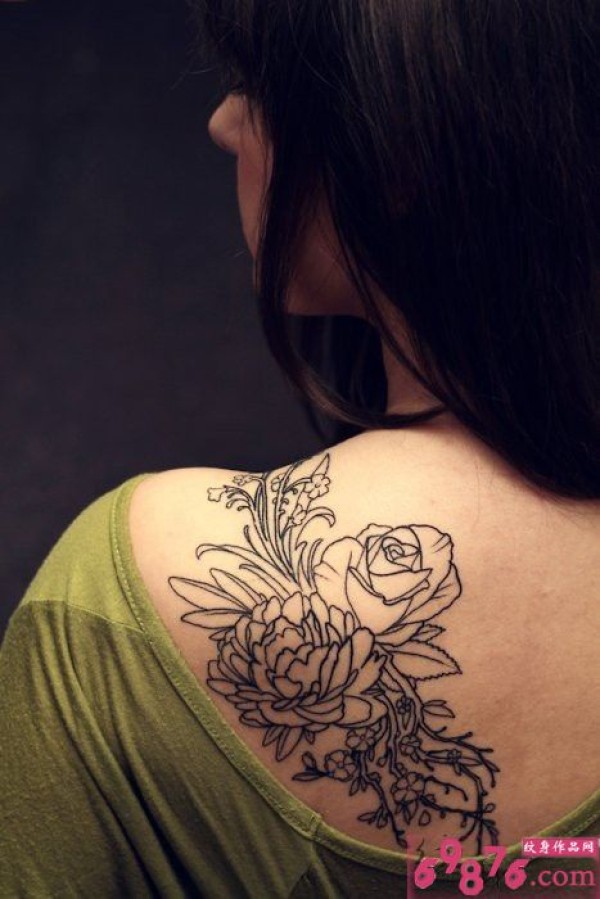 女生肩花纹身_15张女性双肩对称的肩花纹身图案作品图片