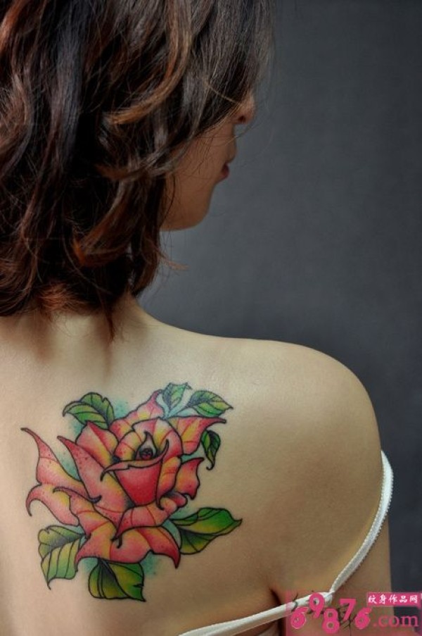 美女香肩玫瑰花纹身图片