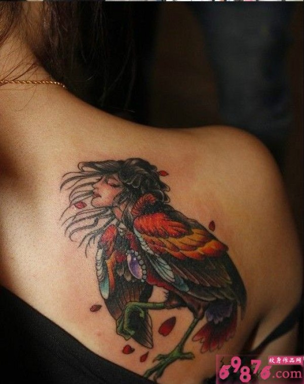 女生肩花纹身_15张女性双肩对称的肩花纹身图案作品图片