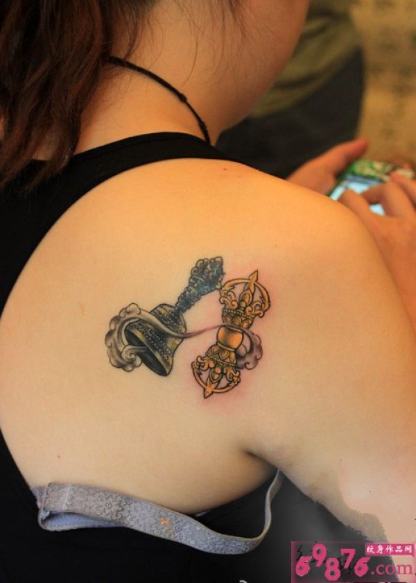 肩部降魔棒图腾纹身图片